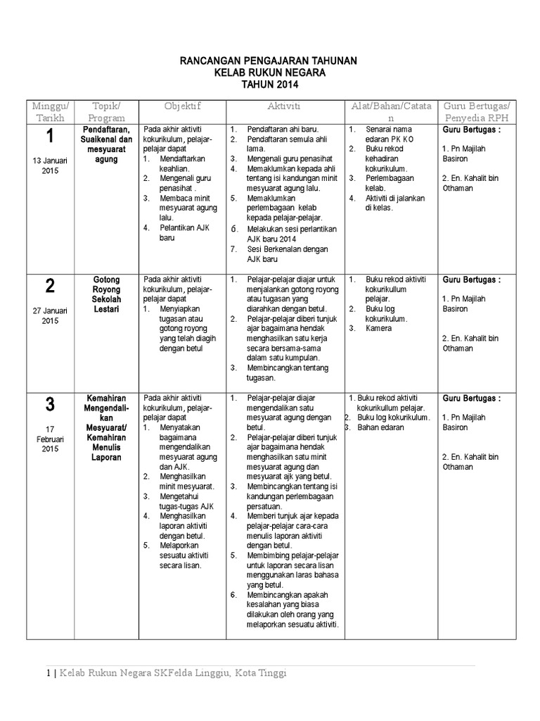 Rancangan aktiviti tahunan kelab rukunegara 2018. 3 3 ahli kelab adalah tertakluk. Mei pertandingan lagu patriotik cuti pertengahan pertengahan jun penghasilan buku skrap tokoh dan pemimpin negara. Perancangan ini dibuat sebagai panduan aktiviti sepanjang tahun 2016.