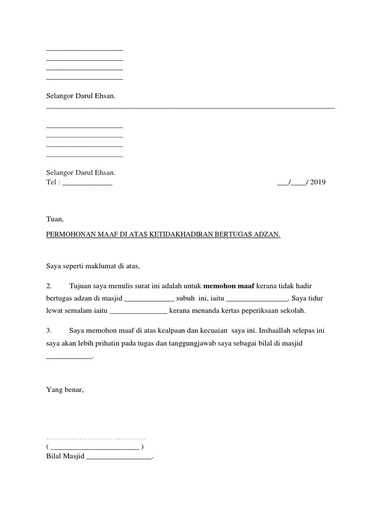 Surat Rasmi Memohon Maaf Atas Kesalahan