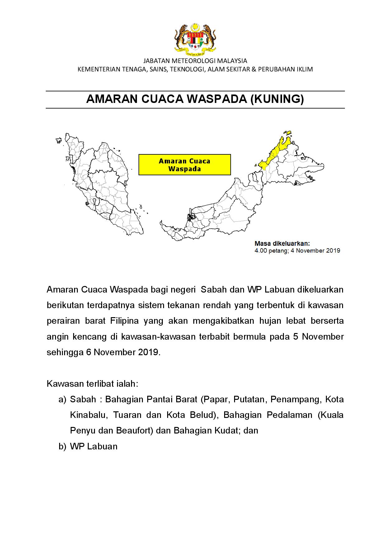 Amaran Cuaca Peringkat Waspada Di Sabah Labuan