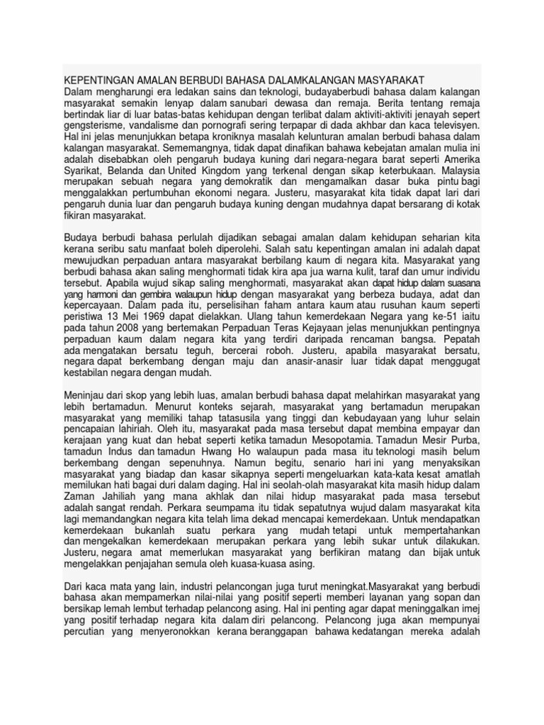 Kepentingan Amalan Berbudi Bahasa Dalam Kalangan Masyarakat Doc Document