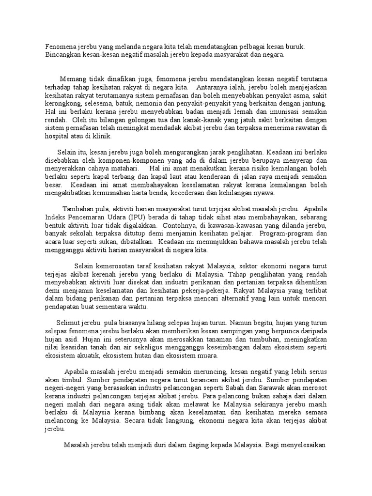 Kesan Kesan Negatif Jerebu Karangan