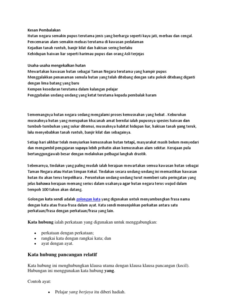 Contoh Karangan Pembalakan Haram Doc