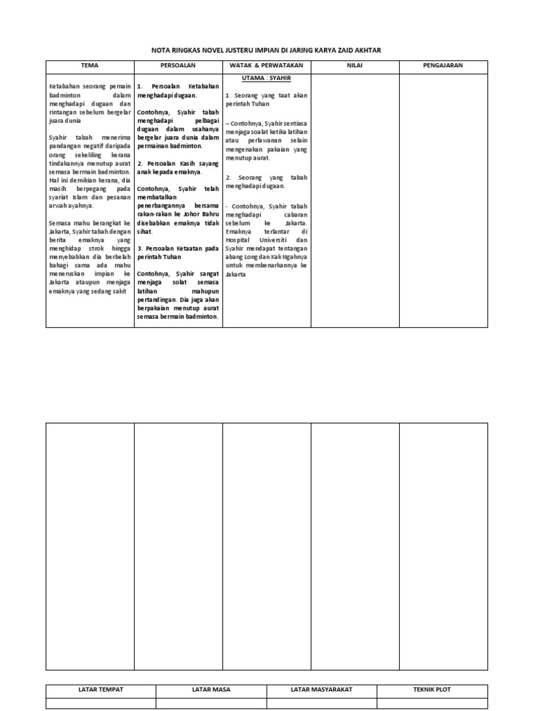 Nota Ringkas Novel Justeru Impian Di Jaring Karya Zaid Akhtar Docx