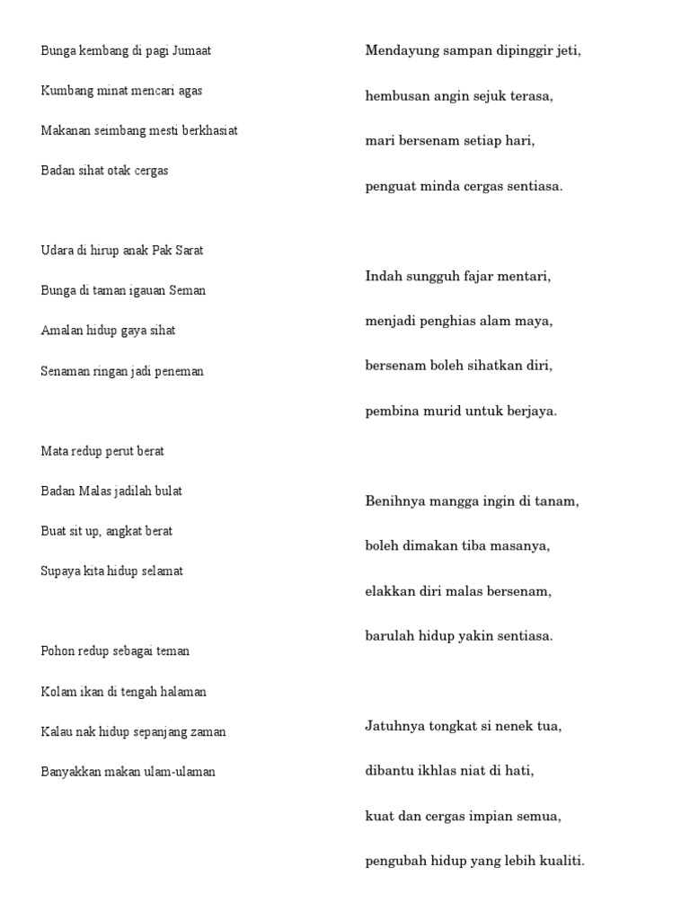 Pantun Soalan Gaya Hidup Sihat Malacca G