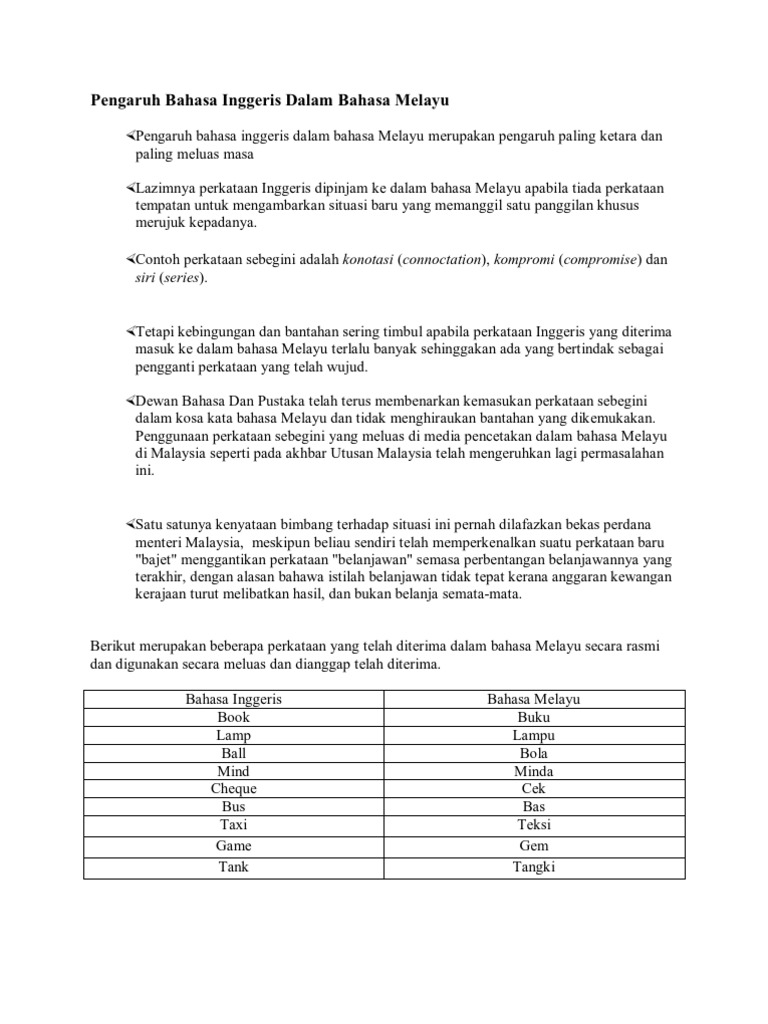 Pengaruh Bahasa Asing Dalam Bahasa Melayu 1