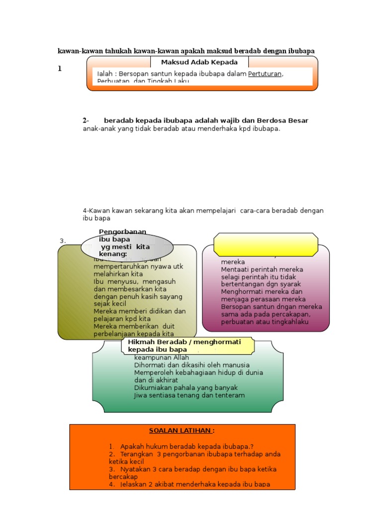 Pendidikan Islam Pelajaran 21 Adab Terhadap Ibu Bapa