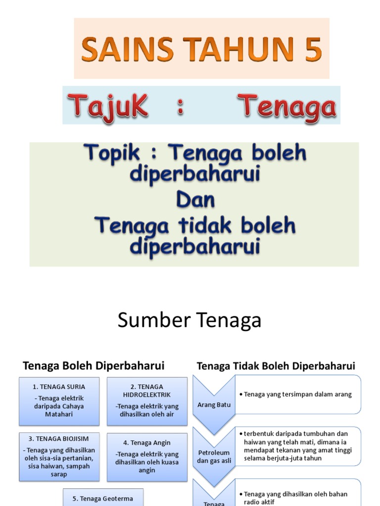 Sumber Sumber Tenaga Bentuk Bentuk Tenaga Sains Tahun 5