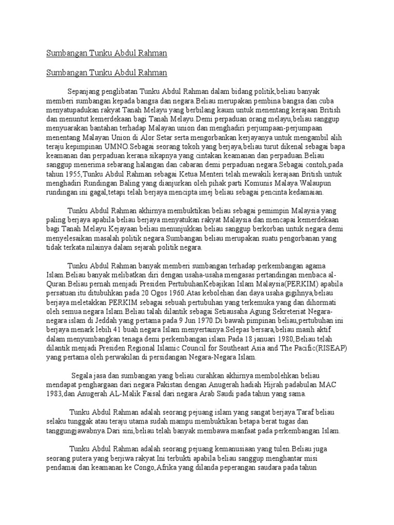 Latar Belakang Tunku Abdul Rahman Docx Latar Belakang Tunku Abdul Rahman Almarhum Tunku Abdul Rahman Putra Al Haj Ibni Almarhum Sultan Abdul Hamid Course Hero