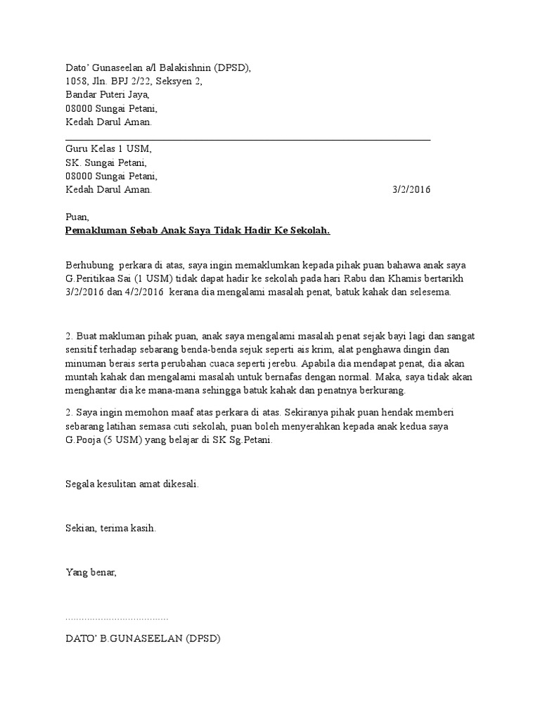 Contoh Surat Segala Kesulitan Amat Dikesali