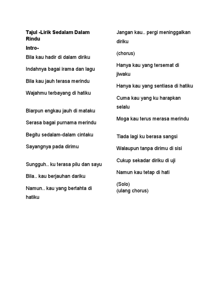 Chord Lirik Lagu On Twitter Lirik Lagu Tajul Sedalam Dalam Rindu Https T Co Hzahhattde